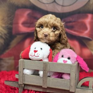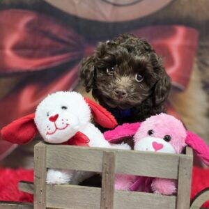 Sahara is about to jump start her career with Jose` this fall. These two small mini's will be such a cute couple and give us some of our smaller micro-mini's. Sahara is our daughter of Lindy my personal lap doodle and Jose` from our Kinder another sweet and well loved micro mini red. Sahara and Jose` have blessed us with a litter of 4 - there are 3 girls - Red - Firebird, Brown - Fiat and Black - Fiesta. 1 lone Brown boy - Ferrari. This litter is fully reserved.